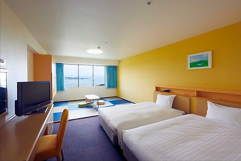 Classic Family Room, Japanese-Western Style, 2 single beds and 2 futon beds, Ocean/Sea view is 388 square feet and includes 2 single beds 80-130 width plus hairdryer, safe, and slippers.